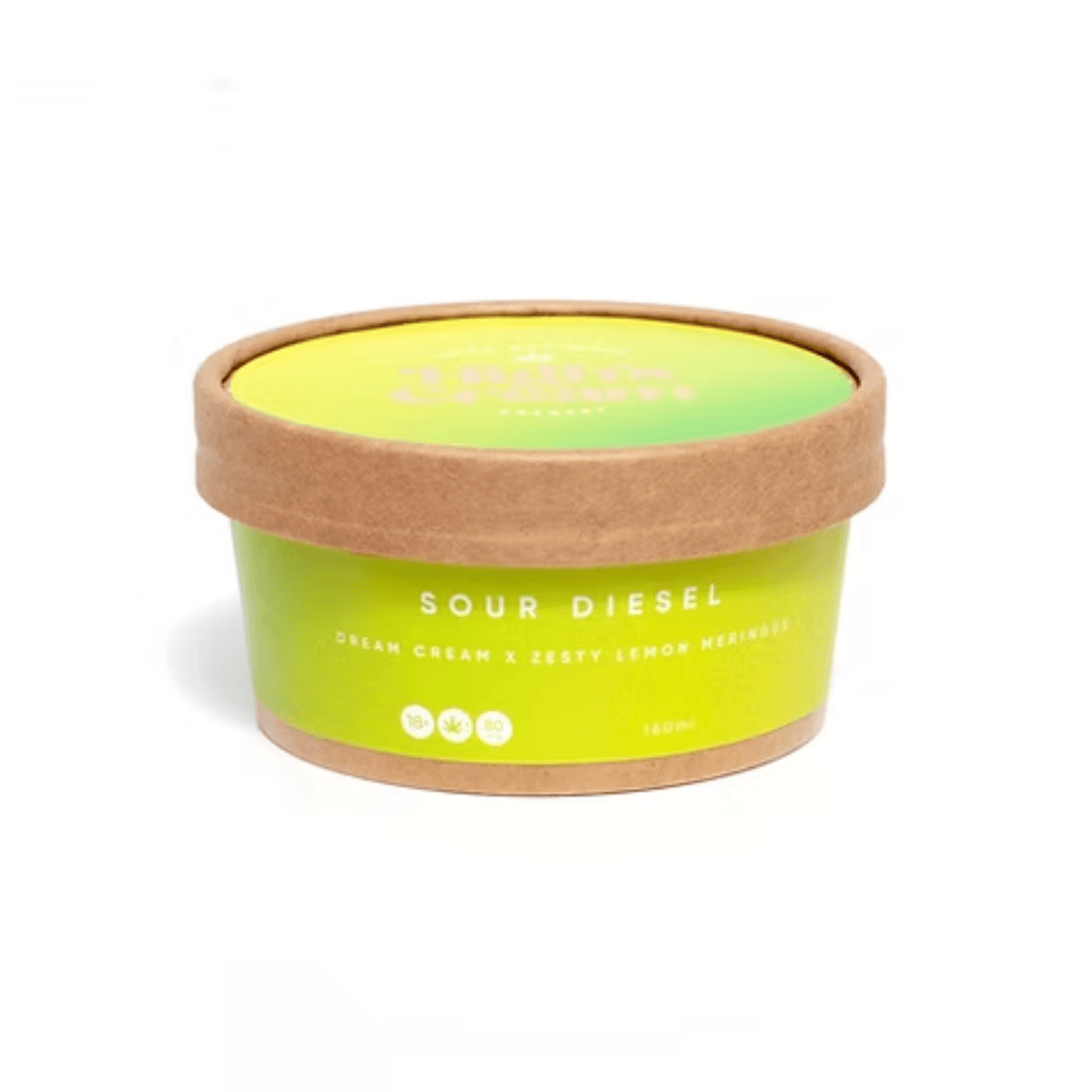Tart lemon curd with fluffy meringue crumble folded into our cannabis-infused Dream Cream. Inspired by the iconic Sour Diesel strain, this flavour is as bold and uplifting as its citrusy punch—perfect for daytime creativity, laughter, and mental clarity.